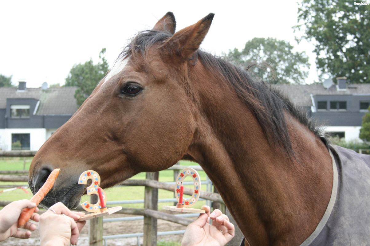 So ! Nun ist es soweit , Sioux ist im April 2009 30 Jahre alt geworden und erfreut sich bester Gesundheit. Wir haben ihn damals , als wir ja mitlerweile 3 Pferde hatten , einer Freundin als Reitbeteiligung angeboten. Da wir ein junges Pferd bekommen hatten und es zeitlich nicht mehr geschaft haben , uns um alle 3 gleichermaßen zu kümmern. So kam uns die Idee , unseren Sioux , Karina als Reitbeteiligung anzuvertrauen. Die Beiden rauften sich zusammen und wurden ein Team. Wir haben uns sehr gefreut das Karina so gut mit ihm zurecht kam. Kurzerhand, aus dem Bauch heraus entschieden wir uns , unseren Sioux 2001 Karina zu schenken. Es war keine leichte Entscheidung ein Familienmitglied wegzugeben. Doch wir hatten bei Karina ein sehr gutes Gefühl ,welches sich auch nach kurzer Zeit bestätigte. Sie überlegte nicht lange stimmte zu und nahm Sioux mit nach Heiligenhaus ( Trainshill ) http://www.trainshill.de Bis zum heutigen Tag bereuen wir unsere Entscheidung in keinster Weise. Karina kümmert sich so fürsorglich und liebevoll um ihren Sioux , das manch einer neidisch werden könnte ein so gutaussehendes Pferd zu besitzen. Denn sein Alter sieht man ihm eigentlich nicht an , wenn man es nicht wüßte. Wir freuen uns auf weitere schöne Jahre und wünschen den beiden alles Gute viel Glück und Gesundheit . Bis zum 40ten Geburtstag von Sioux!